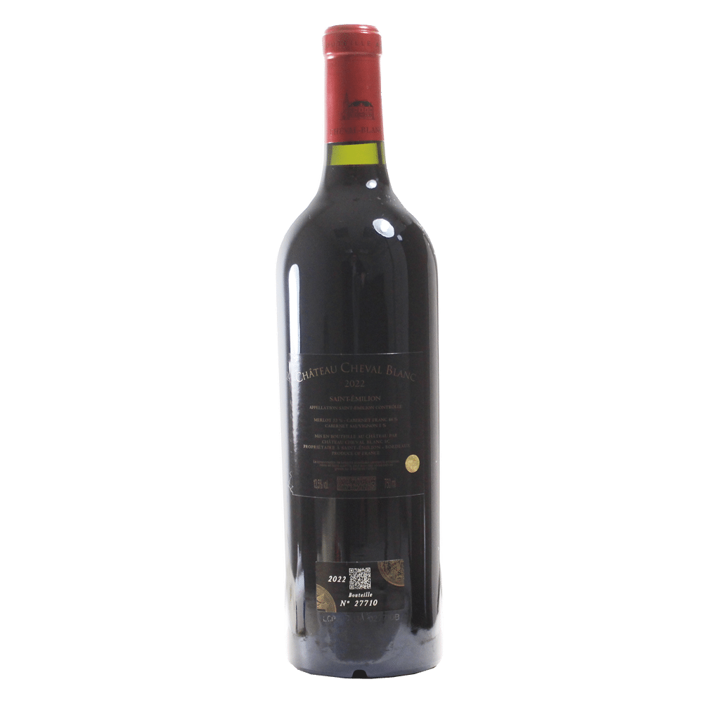 1er Grand Cru Classé A, ce Château Cheval Blanc 2022 est l’un des « Cheval Blanc » les plus équilibrés à la fraîcheur époustouflante. Le Château Cheval Blanc 2022 est un vin d’exception, reconnu pour sa finesse, sa complexité et son élégance rare. Malgré un climat historiquement chaud et sec, ce grand cru parvient à offrir un équilibre magistral, alliant une structure dense et veloutée à une fraîcheur éclatante. Des travaux très importants ont été initiés et un superbe nouveau chai est arrivé en 2011, toit végétalisé, 55 cuves en ciment ivoire faites sur mesure… Un magnifique outil pour l’élaboration d’un des plus grands vins de l’appellation Saint-Emilion. Ce vin rouge de Bordeaux sera contrôlé par notre Sommelier ou par le Maître de chai du Château avant son expédition afin de vous garantir sa qualité.