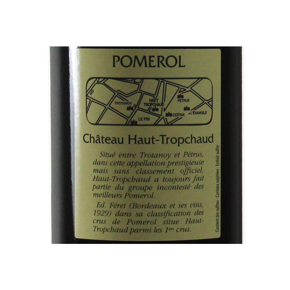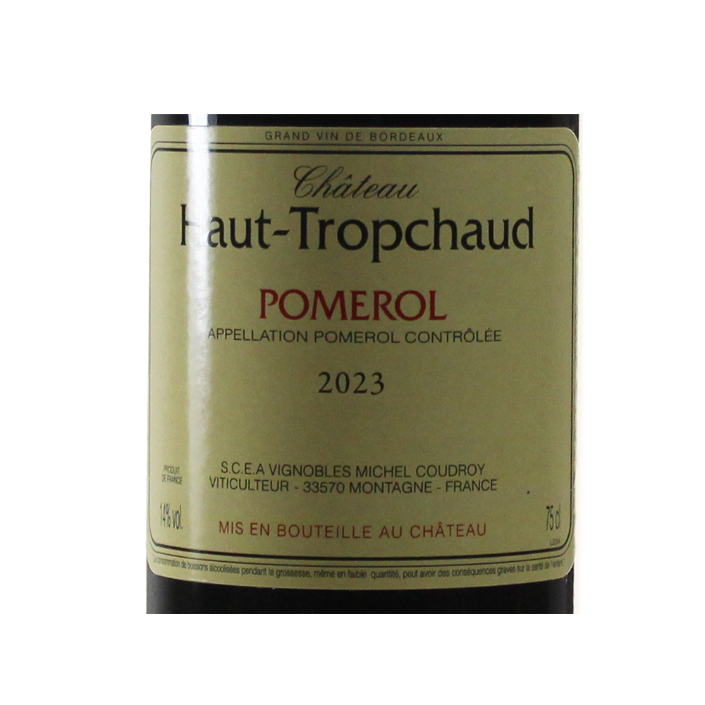 Château Haut-Tropchaud est la propriété de Michel Coudroy qui est également propriétaire de nombreux vignobles tels que Château Maison-Neuve (Montagne de Saint-Emilion) ou le Château Faurie Maison Neuve (Lalande de Pomerol). Voisin du Château Pétrus ou du Trotanoy, il est connu et reconnu par les amateurs du monde entier même s’il n’est pas dans le classement 1855. Élégant et fin, il est soutenu par une puissance et une générosité qui font sa marque de fabrique.